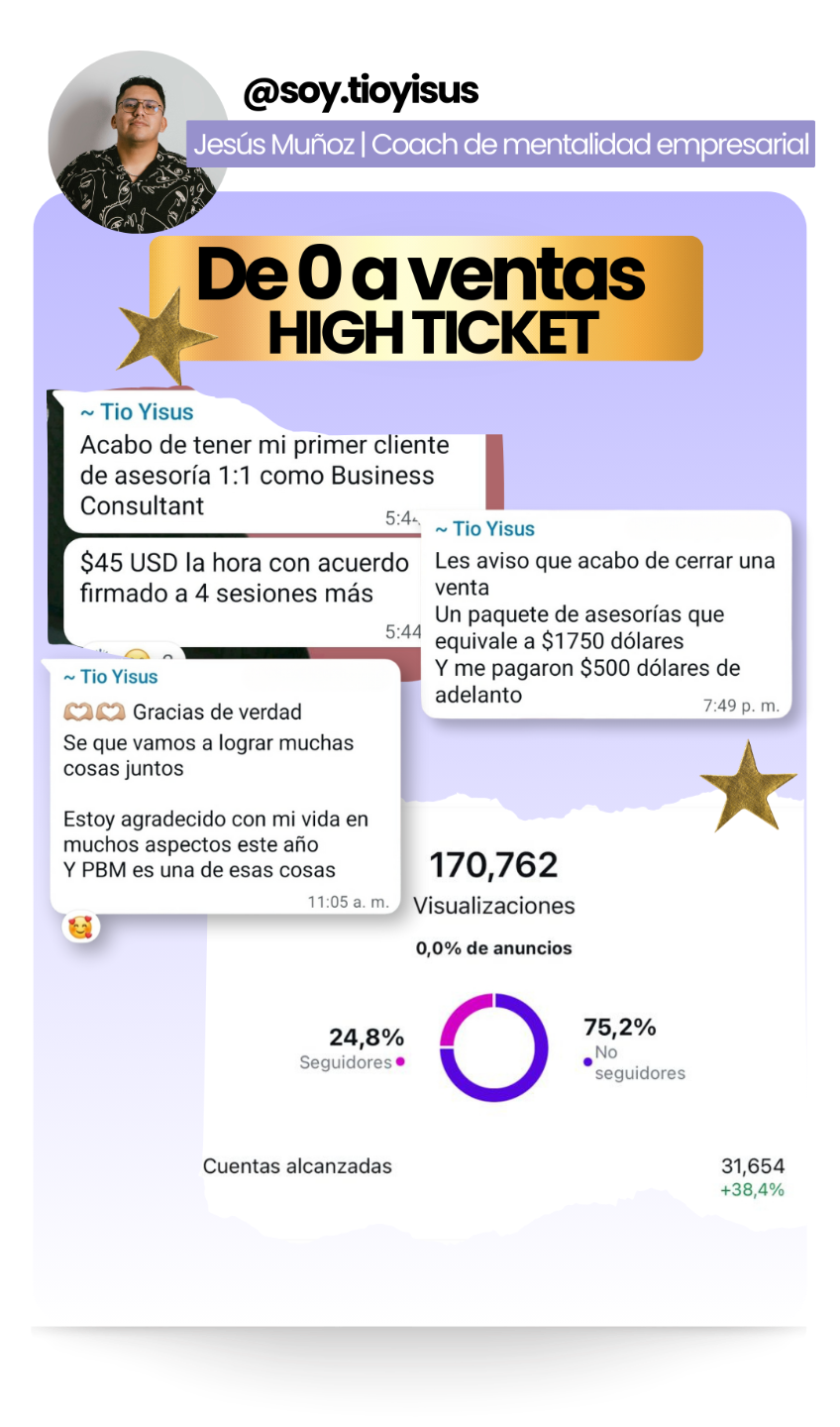 Nada de seguir dándole vueltas preguntándote qué es lo que falta. Tendrás toda mi metodología. Por fin verás esas notificaciones de pagos de 4 cifras llegando a tu inbox un lunes cualquiera por la mañana, y no, no es 'solo un sueño' — es el resultado de un negocio diseñado para aumentar tus ingresos.