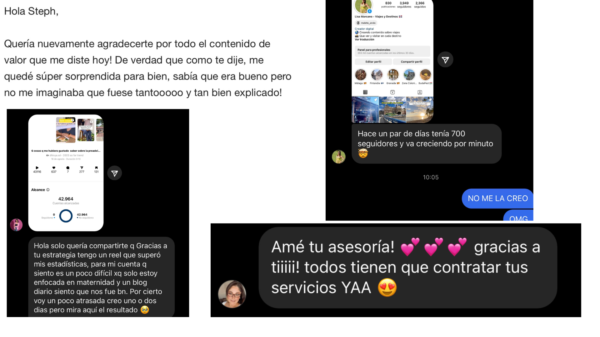 He construido una comunidad de +376K seguidores en Instagram, +150k en Tiktok, y +20k en Youtube... heacompañado a más de 500 negocios y marcas personales a hacer lo mismo.